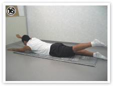 (息を吐きながら腰背部筋を反る) |