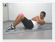(両膝を立て約30°上体を起こし2秒キープ後、元の位置へ)7回〜12回×1〜3セット